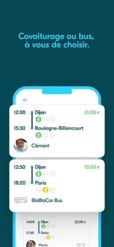Avec BlaBlaCar – Covoiturage et Bus, voyagez différemment : pratique, économique et écologique. Téléchargez dès aujourd’hui l’application sur Google Play et App Store pour rejoindre la plus grande communauté de covoiturage et réserver vos billets de bus en toute simplicité.
