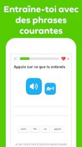 Apprendre avec Duolingo, c’est amusant et captivant. Gagne des points en répondant correctement, entraîne-toi en mode contre-la-montre et monte de niveau. Nos leçons sont à la fois courtes et efficaces, et on a la preuve que ça marche.