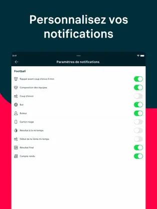3. Alertes push rapides : Soyez informé en temps réel de chaque but, carton, changement ou fin de match.