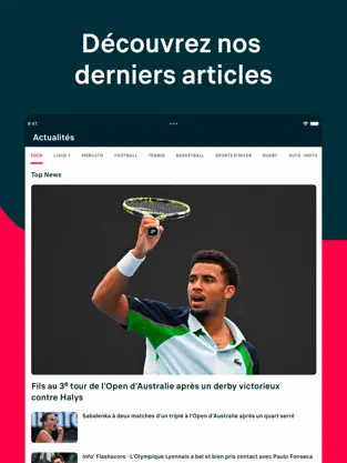 • Résultats en direct : Suivez plus de 30 disciplines sportives et des milliers de compétitions dans le monde entier.