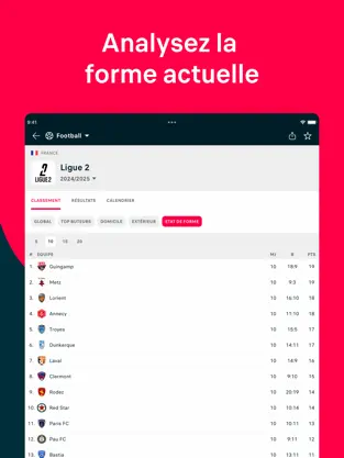 • Calendrier et classements : Consultez les matchs à venir, les classements mis à jour et les historiques de confrontation.