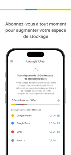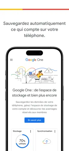 Google One est l’application officielle de Google qui permet de gérer votre stockage cloud et d’accéder à des services supplémentaires. Elle offre une solution simple et sécurisée pour sauvegarder vos fichiers, photos, vidéos et contacts sur Google Drive, Gmail et Google Photos.