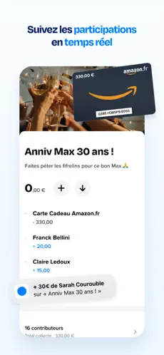 • Cagnotte en ligne : Créez facilement une cagnotte pour des événements (anniversaires, voyages, mariages).