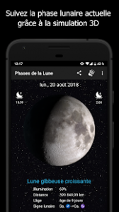 L’application est très bien on peut voir les phases de la lune en avance et à quelle jour/heure cela correspondra. De plus, vous pouvez ajouter un modèle widjet de la phase de la lune actuelle sur votre bureau.