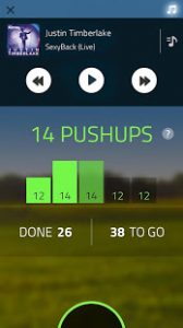 The app’s audio coach guides you on how many pushups to do, when to rest, and when to resume. During the instructions you listen to your favorite music, and the coach blends in when needed.