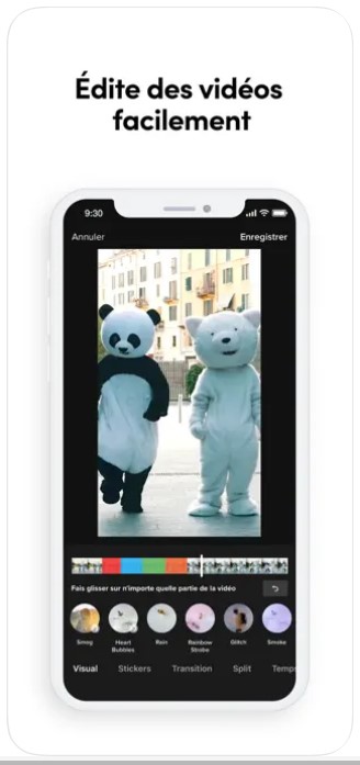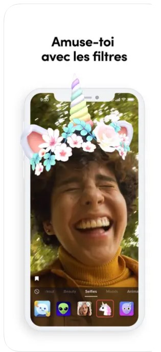 - Utilise des autocollants émoticône, et des filtres de visage.