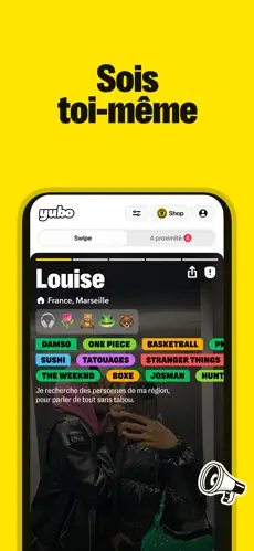 Disponible sur Android et iOS, Yubo est l’espace idéal pour élargir ton cercle social, partager tes passions et rencontrer des personnes qui te ressemblent.