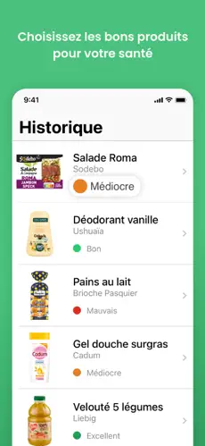 Scan rapide : Accédez à l’évaluation de milliers de produits alimentaires et cosmétiques.