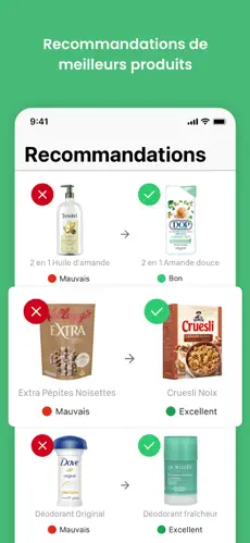 Recommandations plus saines : Si un produit est jugé de mauvaise qualité, Yuka vous propose des alternatives meilleures et accessibles.